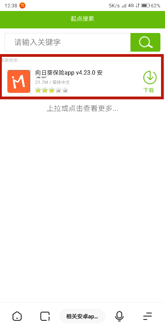 2.進(jìn)入起點后搜索向日葵保險,選擇第一個進(jìn)入下載頁面