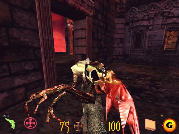 往前走一會兒,然后朝左轉,再走一會兒,再朝左轉,走進一扇大門中。使用散彈獵槍以及ectoplasm法術,消滅所有的Trsanti戰(zhàn)士。朝右邊的大門走去,走進去,然后朝左走,穿過下一扇大門。沿著右側的走廊往前走,轉身,走進小禮拜堂(在前面的游戲中,你曾經(jīng)來過這兒)。朝右走一會兒,然后朝左轉,穿過大門。登上樓梯,來到牧師的房間中。找到一個健康藥包,小心提防著潛伏在房間中的Trsanti戰(zhàn)士。