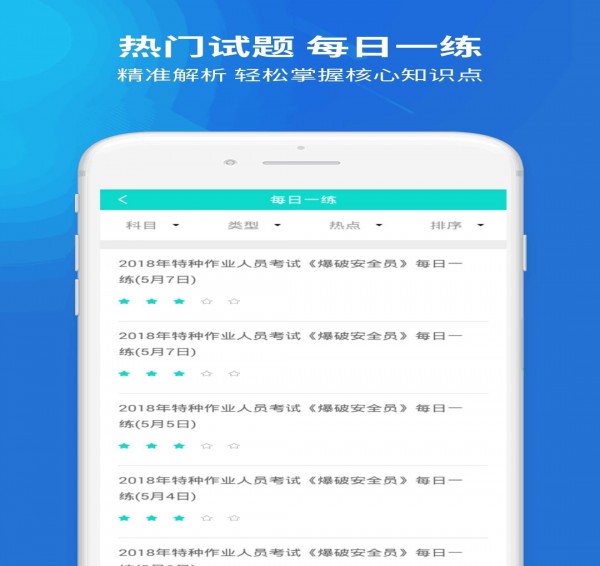 【強大的搜題功能】 上學吧特種作業(yè)人員考試題庫新增搜題功能,特種作業(yè)人員考試題庫中的疑問一搜便知,更支持語音和拍照搜題。【豐富的練習與做題模式】 上學吧特種作業(yè)人員考試題庫有模擬考場、歷年真題練習、每日一練、快速練習、考點練習、考試押題、做題記錄等多種學習與做題模式、豐富多樣化的陪你一起考特種作業(yè)人員。