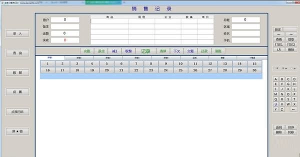 “記錄”按鈕:用于將當前顯示的數(shù)據(jù)信息記錄到銷售表中,完成一次銷售記錄。(輸入信息或進行欠款、還款、退貨、清賬等操作后,都必須點擊“記錄”才能完成相關操作,并將數(shù)據(jù)記錄到銷售表中。)