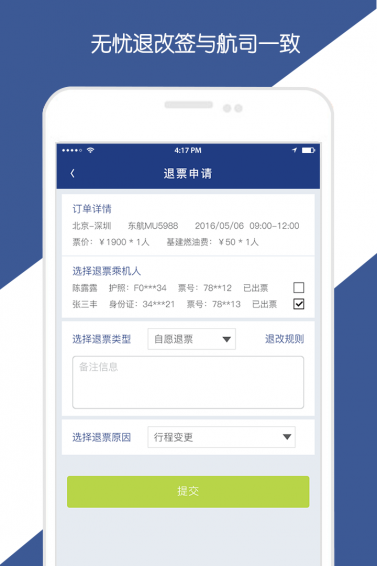 1、透明的退改簽政策天航采取和航空公司完全一致的退改簽政策,減少會(huì)員退改簽上的損失,真正做到價(jià)格透明,規(guī)則清楚。