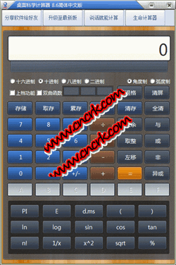 桌面科學(xué)計(jì)算器是一款界面特別簡(jiǎn)潔,功能特別強(qiáng)大的桌面科學(xué)計(jì)算器軟件,支持十六進(jìn)制、十進(jìn)制、八進(jìn)制、二進(jìn)制、函數(shù)計(jì)算等等的所有計(jì)算功能、結(jié)果可保存,非常好用。