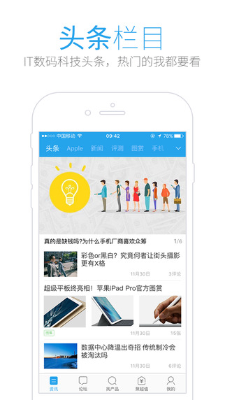 客戶端論壇功能,包含手機(jī)論壇、DIY論壇、筆記本論壇、攝影論壇以及二手論壇。并具備了版塊收藏、節(jié)省流量、拍照上傳和型號(hào)搜索四大特色功能,趕緊下載下來體驗(yàn)一下吧!