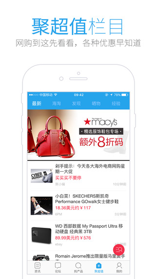 聚超值,專業(yè)電商導(dǎo)購平臺(tái),全天候?yàn)榫W(wǎng)友甄選出各類給力的折扣優(yōu)惠,超值商品網(wǎng)購?fù)扑]以及海量海淘特價(jià)商品情報(bào),為用戶購物提供清晰的指引。透過聚超值的深度爆料和挖掘,將會(huì)顯著提升用戶對電商的轉(zhuǎn)化率,實(shí)現(xiàn)更大的商業(yè)價(jià)值。