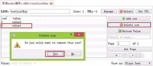 還可以刪除某個(gè)list中的元素,點(diǎn)擊"Delete row"刪除,刪除完成之后,如果沒(méi)有刷新,點(diǎn)擊Reload value重新加載。
