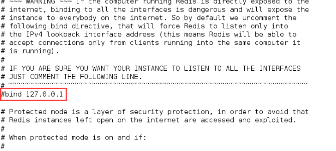 一、注釋redis.conf文件中的:bind 127.0.0.1(在一段文字之前打#號(hào)為注釋)