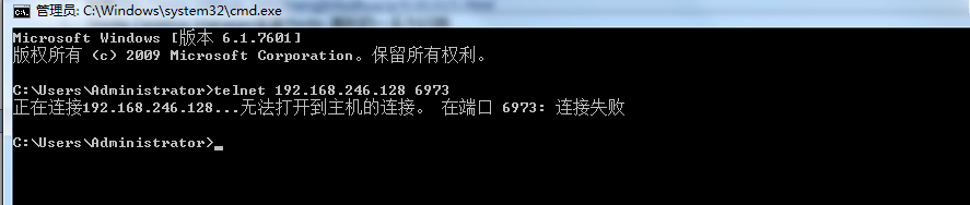 四、接著又是個(gè)坑,拿到IP后,返回Windows,開(kāi)啟cmd,通過(guò)telnet命令,測(cè)試端口是否暢通。;