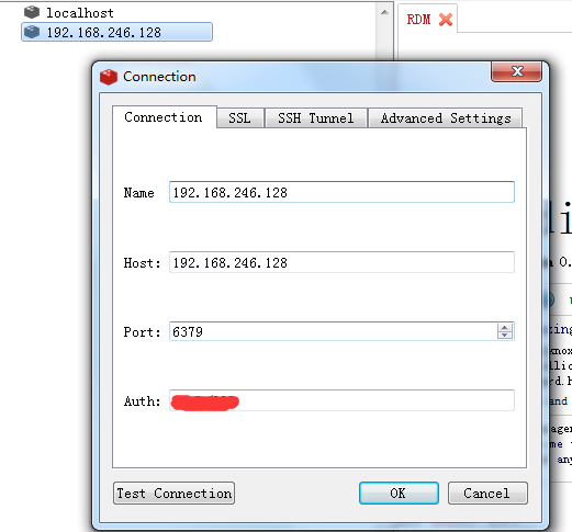 點(diǎn)擊后就會(huì)彈出一個(gè)對(duì)話框,我們?cè)趯?duì)話框中輸入自己的Redis地址、