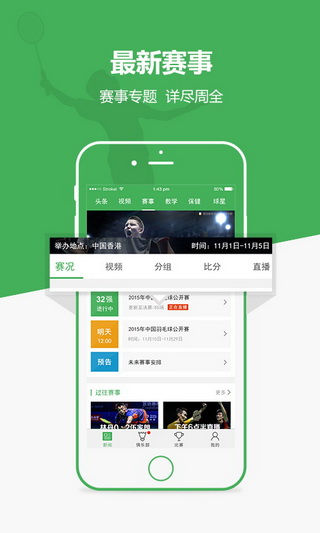 所有與比賽相關(guān)的信息應(yīng)有盡有。手機看直播,賽事直播提醒,每場比賽具體比分,比賽戰(zhàn)報,比賽分組....