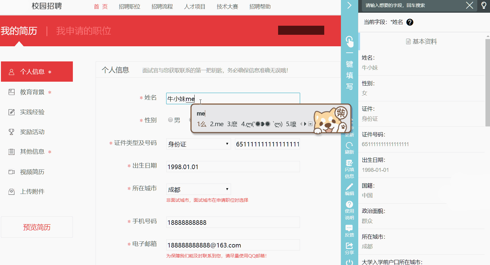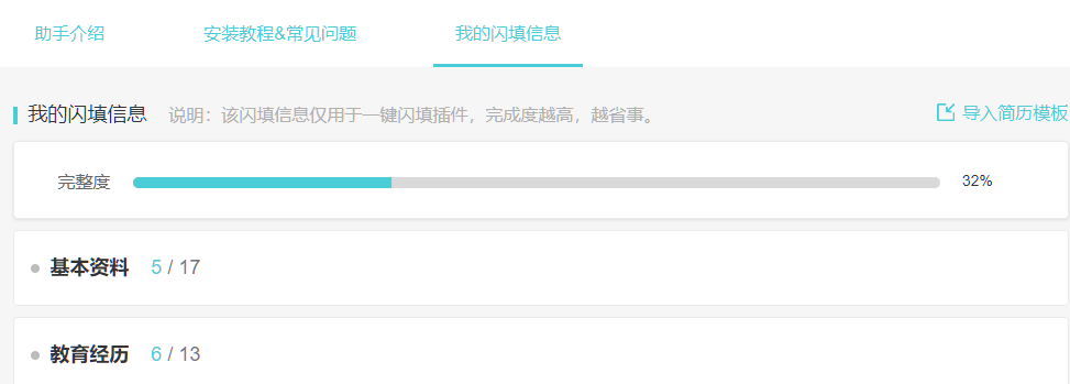 閃填信息涵蓋了數(shù)十家互聯(lián)網(wǎng)企業(yè)簡歷字段信息,一次全面的填寫,可匹配多家企業(yè)簡歷。