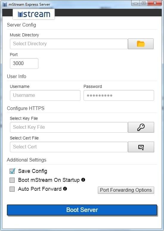 mStream Express是一個(gè)特殊版本的服務(wù)器,它與所有依賴項(xiàng)預(yù)先打包。它還附帶了一個(gè)GUI配置工具,使設(shè)置盡可能簡(jiǎn)單。適用于Mac、Windows和Linux。