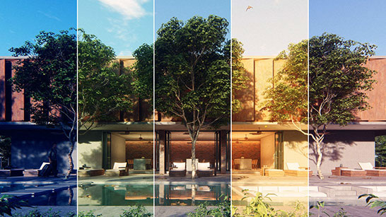 顏色太冷了嗎?太暗了嗎?曝光過(guò)度了嗎?Lumion 8 允許您使用顏色校正改進(jìn)輕松展現(xiàn)模型最好的一面。調(diào)整色溫以適合“溫暖”心情。調(diào)整振動(dòng)以增加不飽和顏色的強(qiáng)度。您甚至可以通過(guò)淡化陰影來(lái)緩和尖銳的對(duì)比。