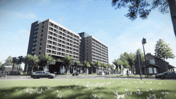 模型放置完成后,光影效果Lumion會(huì)自動(dòng)進(jìn)行添加,我們只需要對(duì)建筑增加材質(zhì),即可非常快速的獲得效果圖。