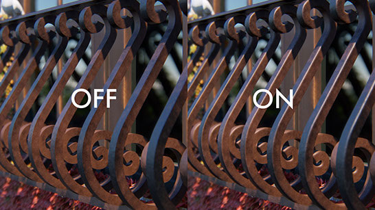 “天空光” 是一款先進(jìn)的日光模擬器,用于柔化和分散場(chǎng)景的環(huán)境光。它與“柔和陰影”和“精致細(xì)節(jié)陰影”結(jié)合使用,增強(qiáng)了這些元素的真實(shí)相互作用。觀(guān)看樹(shù)葉和樹(shù)木變得逼真,發(fā)現(xiàn)人物、建筑物和景觀(guān)突然變得更符合其所在環(huán)境。