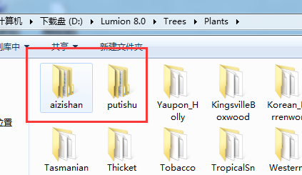 本文以lumion8.0為例,把植物素材放到lumion安裝文件夾下:如小編的lumion安裝在D盤(pán),則目錄為:D:\Lumion 8.0\Trees\Plants (注意復(fù)制的時(shí)候,植物素材庫(kù)文件夾名字必須是字母,避免報(bào)錯(cuò)),如圖2,小編示范把putishu這一植物素材的文件放到該路徑下。