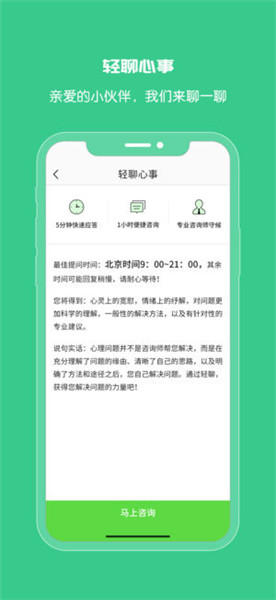 用戶可以在APP上通過全面心理體檢、情緒采集分析等方式監(jiān)控自身的心理健康狀況如發(fā)現(xiàn)問題,可以通過免費(fèi)心理咨詢、付費(fèi)咨詢、專家咨詢、自我調(diào)適等方式解決心理問題