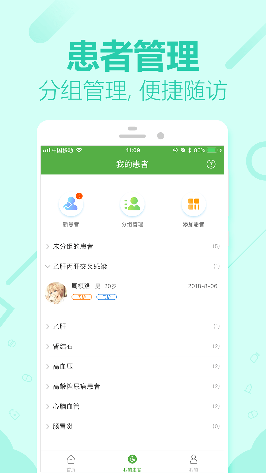 「在線咨詢」實(shí)現(xiàn)語(yǔ)言、文字和圖文實(shí)時(shí)溝通,自定義在線時(shí)間、病情查看等功能;「患者管理」可對(duì)患者進(jìn)行分組管理,便捷查看患者健康檔案及隨時(shí)追蹤患者病情發(fā)展;