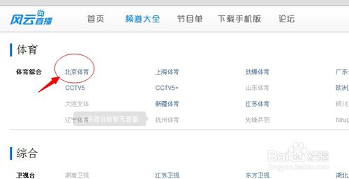點擊頻道大全后,我們隨便找一個頻道打開,這里我們點擊北京體育(如下圖)