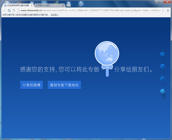 當(dāng)你的世界之窗瀏覽器變得不好用的時候,你可以把TheWorld.exe復(fù)制到空的文件夾下運行,這樣就可以排除插件、黑名單、設(shè)置等的問題了(這時僅使用了默認(rèn)設(shè)置) 。