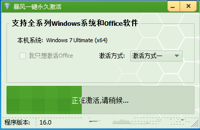 1、暴風激活工具隨著Windows10系統(tǒng)的普及,最近新添加針對Windows10系統(tǒng)的激活和最新版Office軟件的激活功能.2、暴風激活工具一鍵永久激活win7系統(tǒng),win8系統(tǒng),win8.1系統(tǒng),win10系統(tǒng)和各系列的Office軟件的激活問題,輕松 一鍵就可以實現(xiàn)永久完美離線激活,完全超越其他任何激活工具.