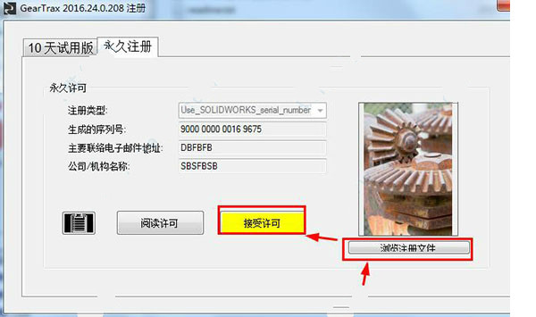 在本站下載好geartrax2016安裝包將其解壓好,然后雙擊運行里面的“.exe”文件,軟件打開后,復(fù)制它生成的序列號。(注意:安裝geartrax2016之前一定要先安裝Solidworks才能使用)