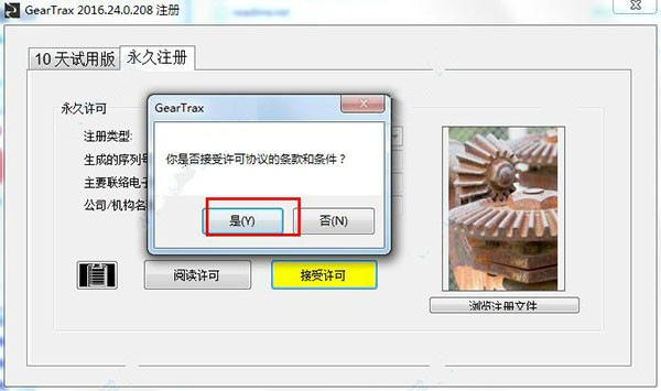 然后回到軟件,選擇“永久注冊”,點擊“瀏覽注冊文件”,選擇之前存放在桌面的注冊文件,然后你就可以點擊“接受許可”