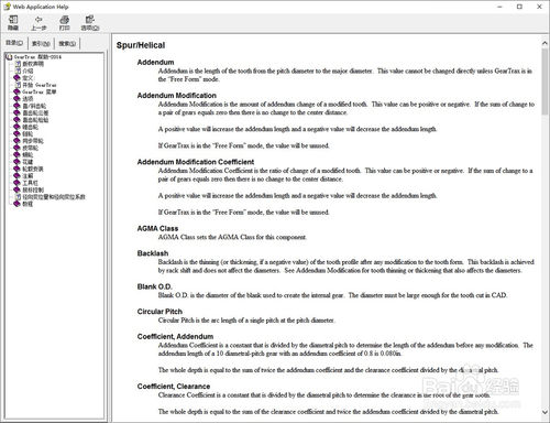 在幫助主題中有對各個參數(shù)的說明,這時發(fā)現(xiàn)軟件還需要改回英文版才能對應(yīng)起來的話,則打開英文版軟件。一般來說,安裝目錄下面,GearTrax-zh-CN是中文版,而GearTrax就是英文版了。