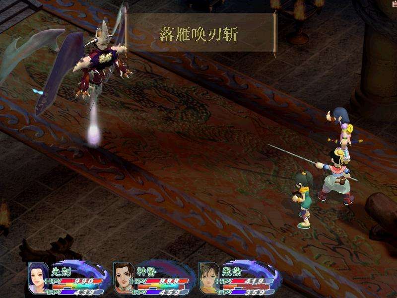 指環(huán)系統(tǒng)從戰(zhàn)斗介面中可以看到,每個(gè)角色都有兩條蓄電槽。下面的一條是傳統(tǒng)的行動(dòng)槽,充滿后玩家就可以控制角色攻擊或施法;而上面的一條就是獨(dú)特的指環(huán)蓄電槽。指環(huán)是一種特殊的飾品,可以讓角色獲得某種特殊的能力加權(quán)。例如醫(yī)俠指環(huán),可以讓角色在使用回復(fù)類招式時(shí)有一定幾率讓回復(fù)值增加50%。而每當(dāng)這種特殊效果出現(xiàn)時(shí),角色的指環(huán)槽就會(huì)增長(zhǎng)。