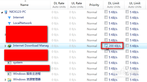 2.例如要設(shè)置IDM的下載速度為200KB/s,就在IDM與“DL Limit”交錯(cuò)的一欄點(diǎn)一下鼠標(biāo)左鍵。