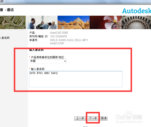 6、按下圖選擇,輸入激活碼,點擊下一步。