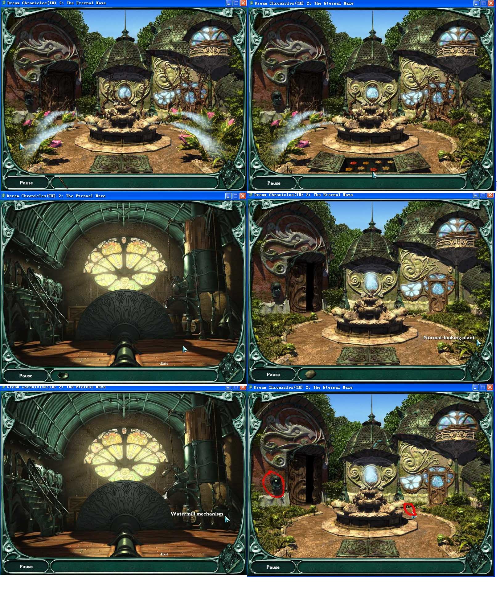 搜集圓石板,按中間的鈕,在門兩旁各顯出兩個6小圓圍成的大圓,把石板嵌入,藍色為正確,紅色錯誤,打開門,進入塔內(nèi)