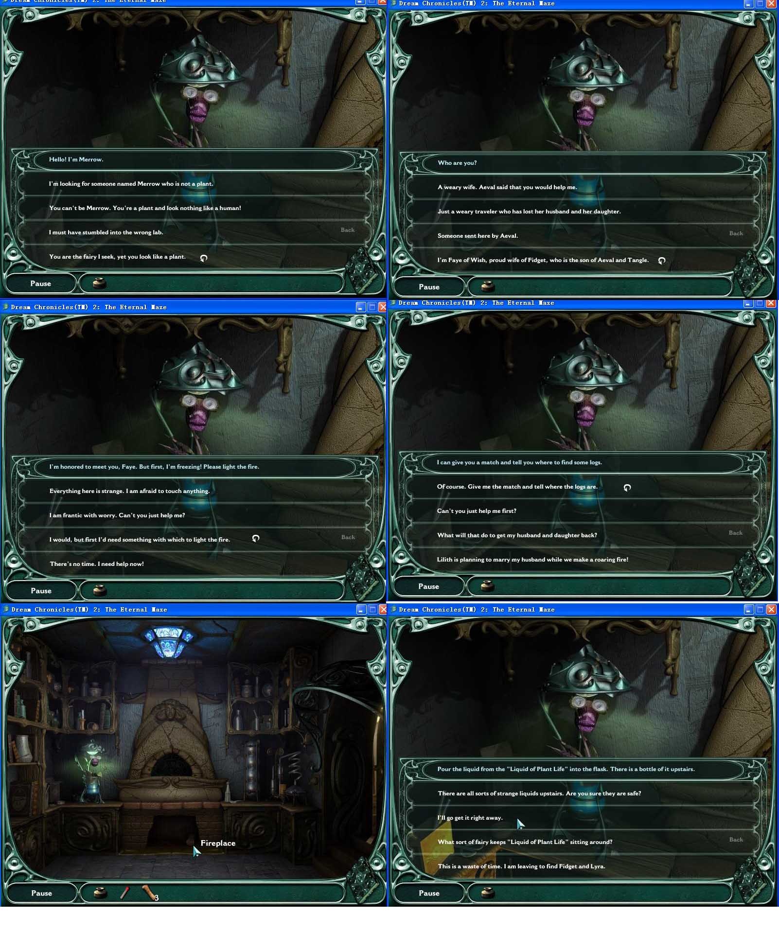 和花對話,選擇先幫助花的那些選項就可以(箭頭所對),然后它會給你一根火柴,去庭院里撿4根木頭,放入壁爐,用火柴點燃,完成花的第一個要求。記得撿地上的酒精燈和寶石架,然后它會要求給它換營養(yǎng)液。去留聲機那個屋子,靠近留聲機的左邊書架上方拿營養(yǎng)液。