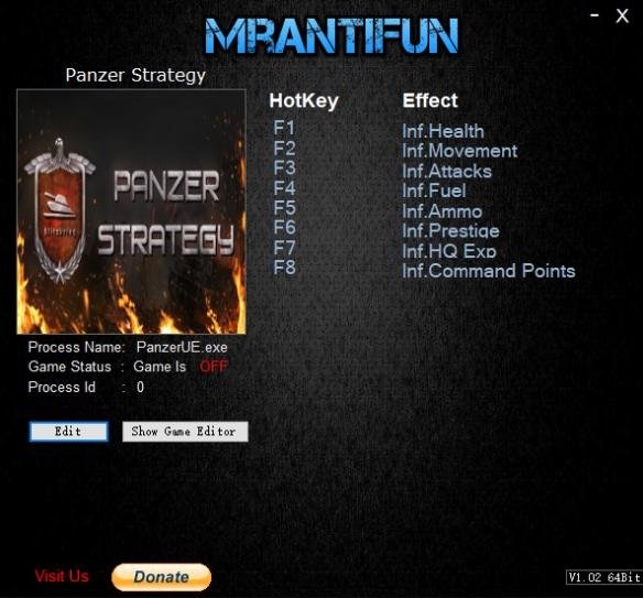 裝甲策略八項(xiàng)修改器 v2018.09.17 MrAntiFun版 軟件大?。?/span>606KB