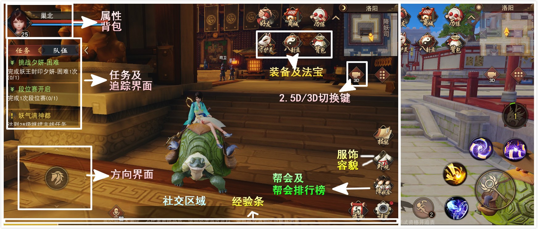 離開坐騎后,界面增設(shè)變身、召喚、陰陽眼三個按鈕: