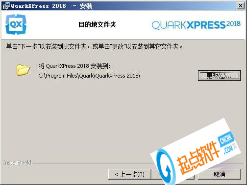 7、選擇QuarkXPress 2018目的地文件夾,默認的是C盤,想修改點【更改】
