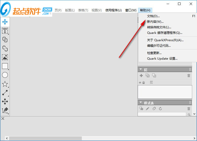 6、quarkxpress 2018的主界面,可以點擊右邊查看軟件的新功能以及幫助內(nèi)容