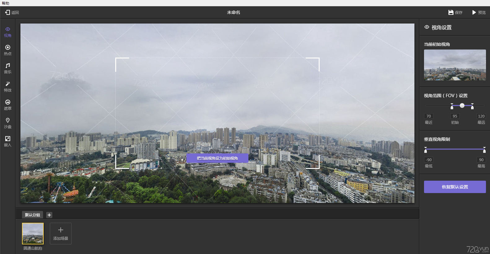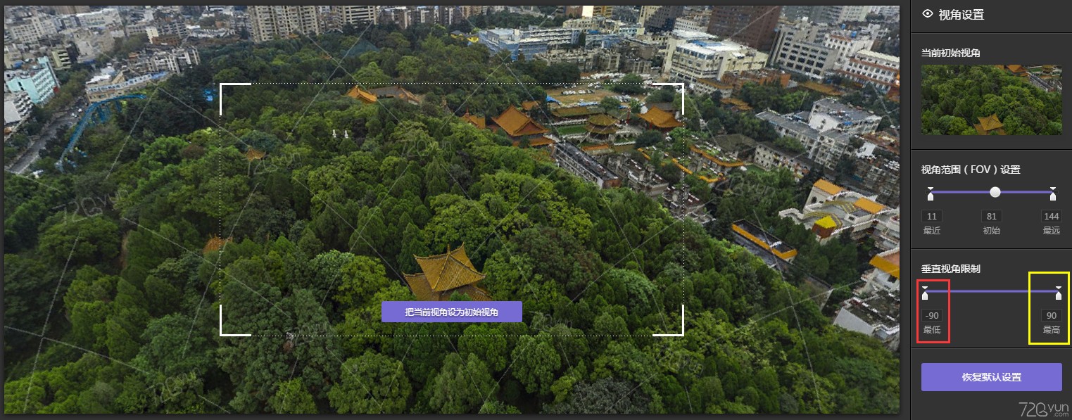 FOV設(shè)置,簡(jiǎn)單來(lái)說(shuō)就是一個(gè)全景作品能夠被放大/縮小到什么程度。