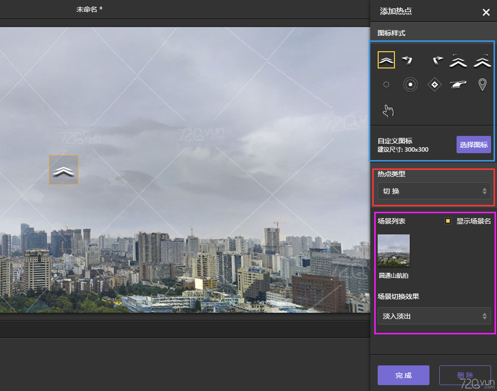 完成設(shè)置后拖拽熱點(diǎn)到合適的區(qū)域,點(diǎn)擊完成保存。