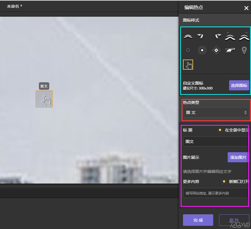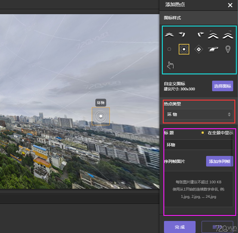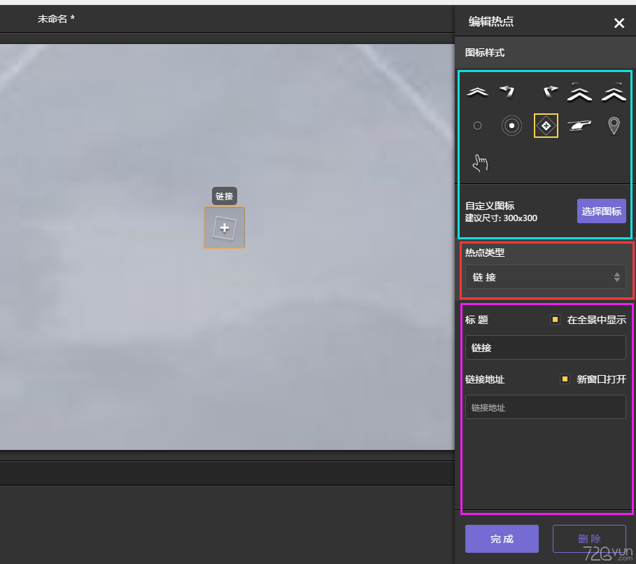 熱點(diǎn)可以在全景中添加各種不同類型的熱點(diǎn)。