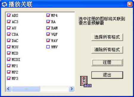 1.regcfg.exe——輕松關(guān)聯(lián)播放多媒體文件現(xiàn)在很多人都選擇超級解霸V8作為影音文件播放器,可當(dāng)安裝了其它的播放軟件以后(例如東方影都),再使用V8就不能直接打開了.這是因為多媒體文件與默認(rèn)播放器間的關(guān)聯(lián)被更改了,難道要重新安裝解霸V8?其實根本不需要的!只要在其安裝目錄下找到regcfg.exe文件,雙擊打開后勾選想用解霸播放的影音文件,再單擊"注冊"即可(如圖1).