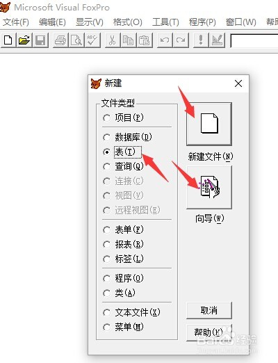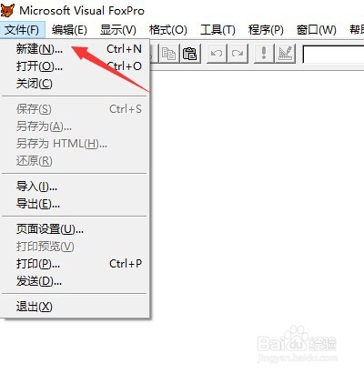 打開Visual FoxPro 6.0軟件,從第一列的“文件”菜單中選擇“新建”