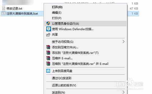 2、使用管理員權(quán)限運(yùn)行注冊(cè)的批處理文件。