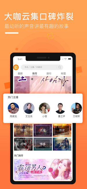 有聲小說涵蓋玄幻、修仙、都市、言情、恐怖、官場(chǎng)、穿越、同人、耽美、校園、軍事、總裁、武俠、網(wǎng)游、歷史、奇幻、靈異、推理等各類型熱門網(wǎng)絡(luò)原著小說。
