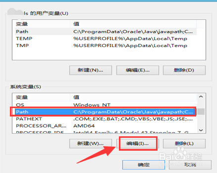 在系統(tǒng)變量中找到Path,把JAVA_HOME配置到path中,選擇中path后,點(diǎn)擊編輯,把JAVA_HOME\bin;配置到最前面