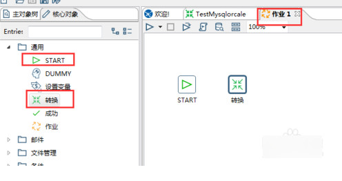 使用作業(yè)可以定時或周期性的執(zhí)行轉(zhuǎn)換,新建一個作業(yè)。并從左邊面板拖入start 和轉(zhuǎn)換。