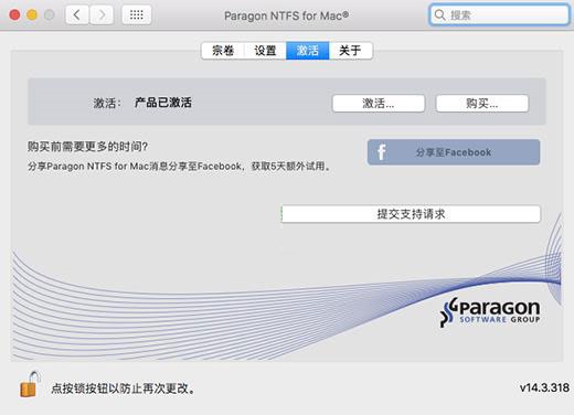 4、再次查看【激活】選項(xiàng)界面時(shí),可以看到軟件激活狀態(tài)變?yōu)椤爱a(chǎn)品已激活”,此時(shí)就表明給產(chǎn)品可以在你的Mac上長期使用了。Mac讀寫NTFS快速實(shí)現(xiàn)。