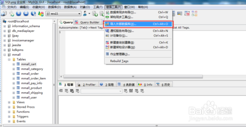 點擊SQLyog —>增強工具—>導入外部數(shù)據(jù)庫