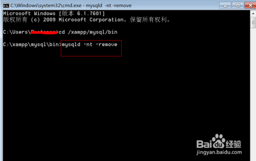 然后輸入命令'mysqld -nt -remove' 命令,回車