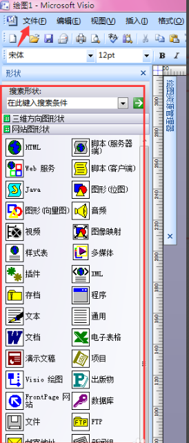 查找形狀:打開【文件】——【形狀】——【網(wǎng)絡(luò)】,選擇適合自己行業(yè)的形狀