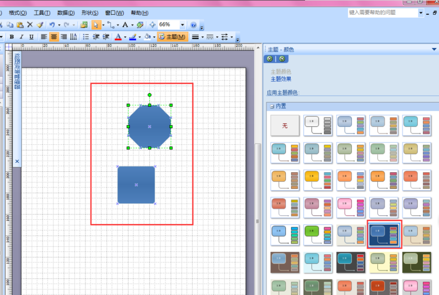 選擇一個(gè)形狀,然后在【主題】的【顏色】和【效果】中調(diào)到合適的。